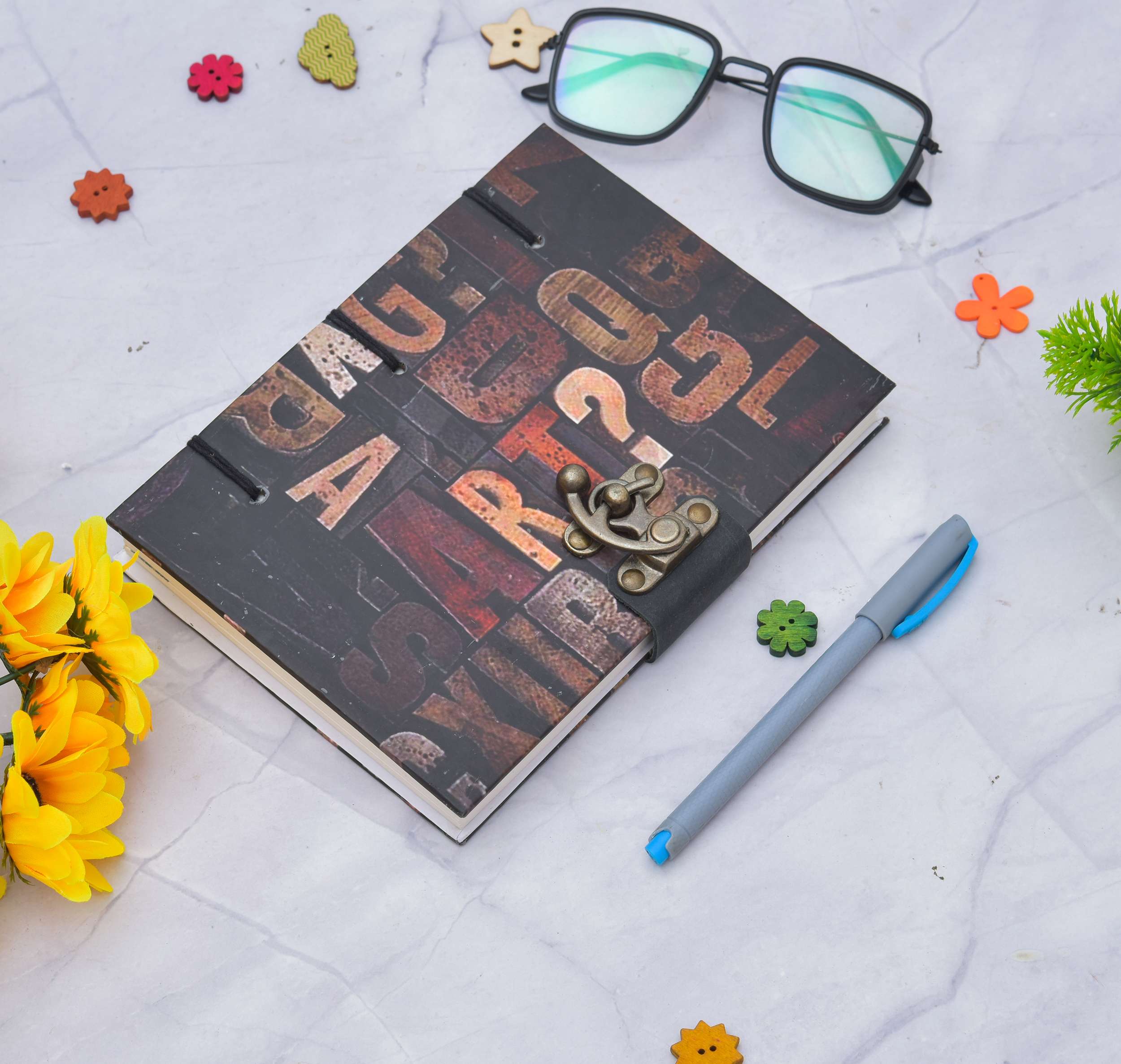 vintage handmade leather journal. Crafted with genuine leather, it radiates authenticity and charm, perfect for those who appreciate classic craftsmanship. The premium antique lock closure adds a touch of elegance and security, ensuring your thoughts and memories are safeguarded within its pages. Inside, you’ll discover 200 brown handmade pages, providing ample space for your musings, sketches, and stories to unfold. Whether it’s for journaling, sketching, or planning, this versatile journal is a timeless companion for your creative endeavors. Treat yourself or a loved one to this exquisite piece, a celebration of tradition and creativity