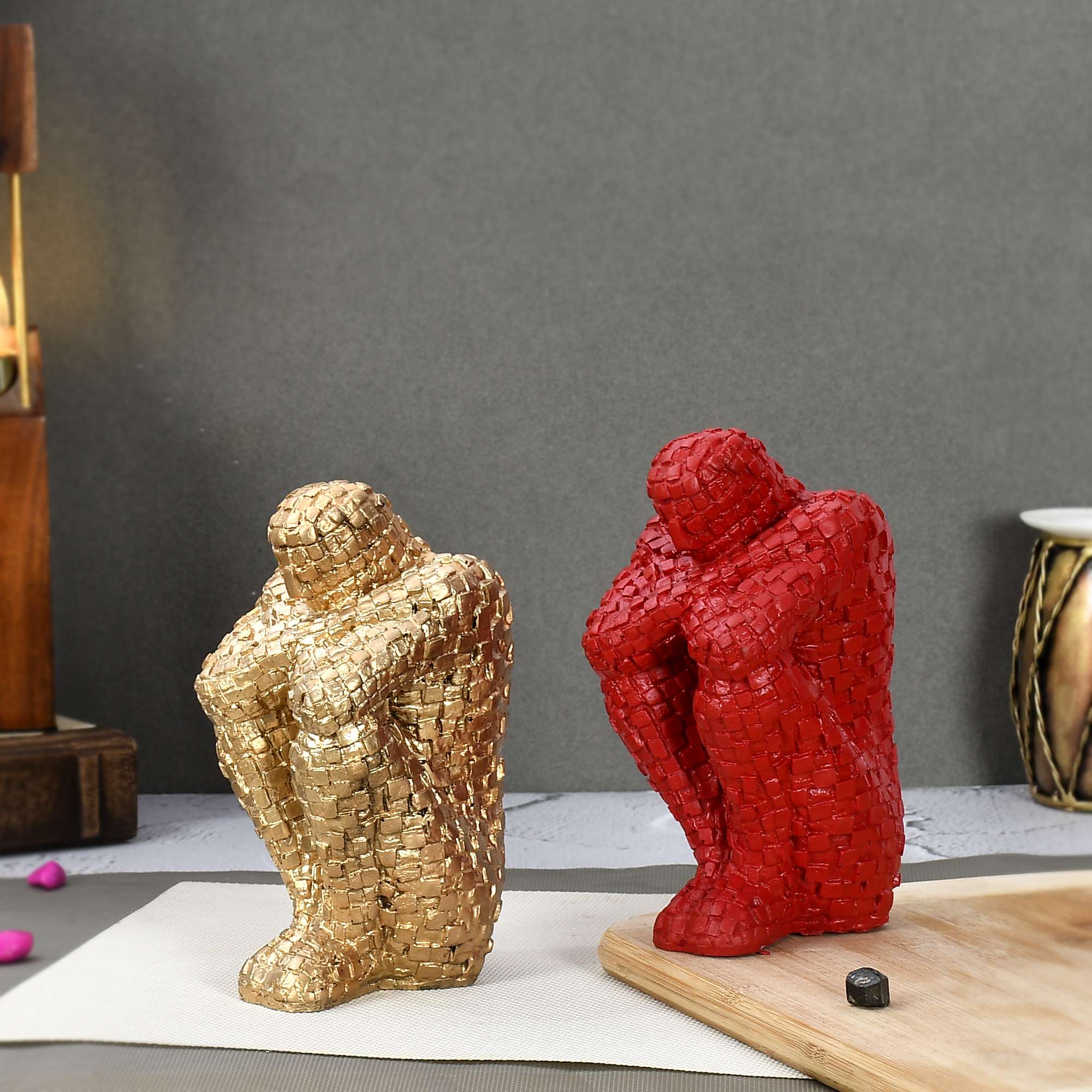 Handcrafted Thinking Mens in Sitting Position for Home Decor/Gifting/Living Room Decorative Showpiece – 20 cm (Polyresin, Red, Gold)